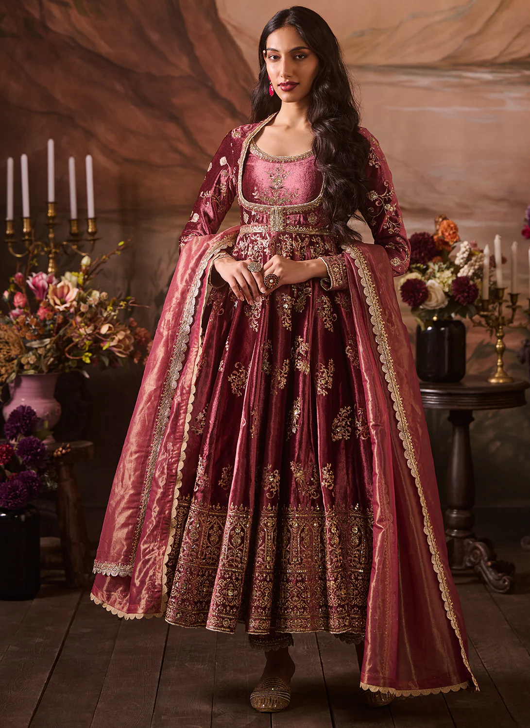 Dusty Pink Embroidered Velvet Anarkali