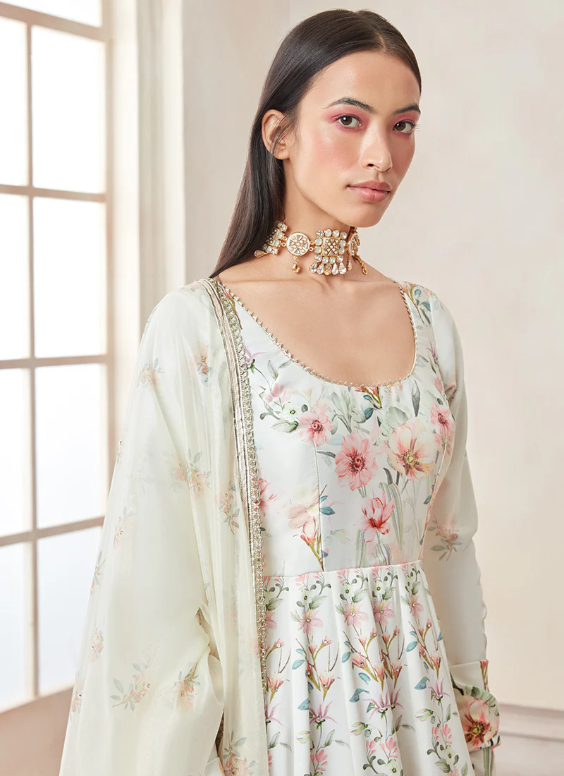 Off White Multicolor Floral Printed Anarkali