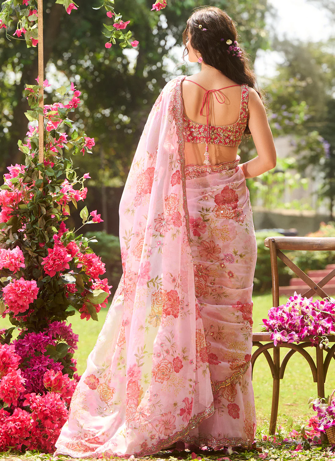 Pink Multicolor Floral Embroidered Saree